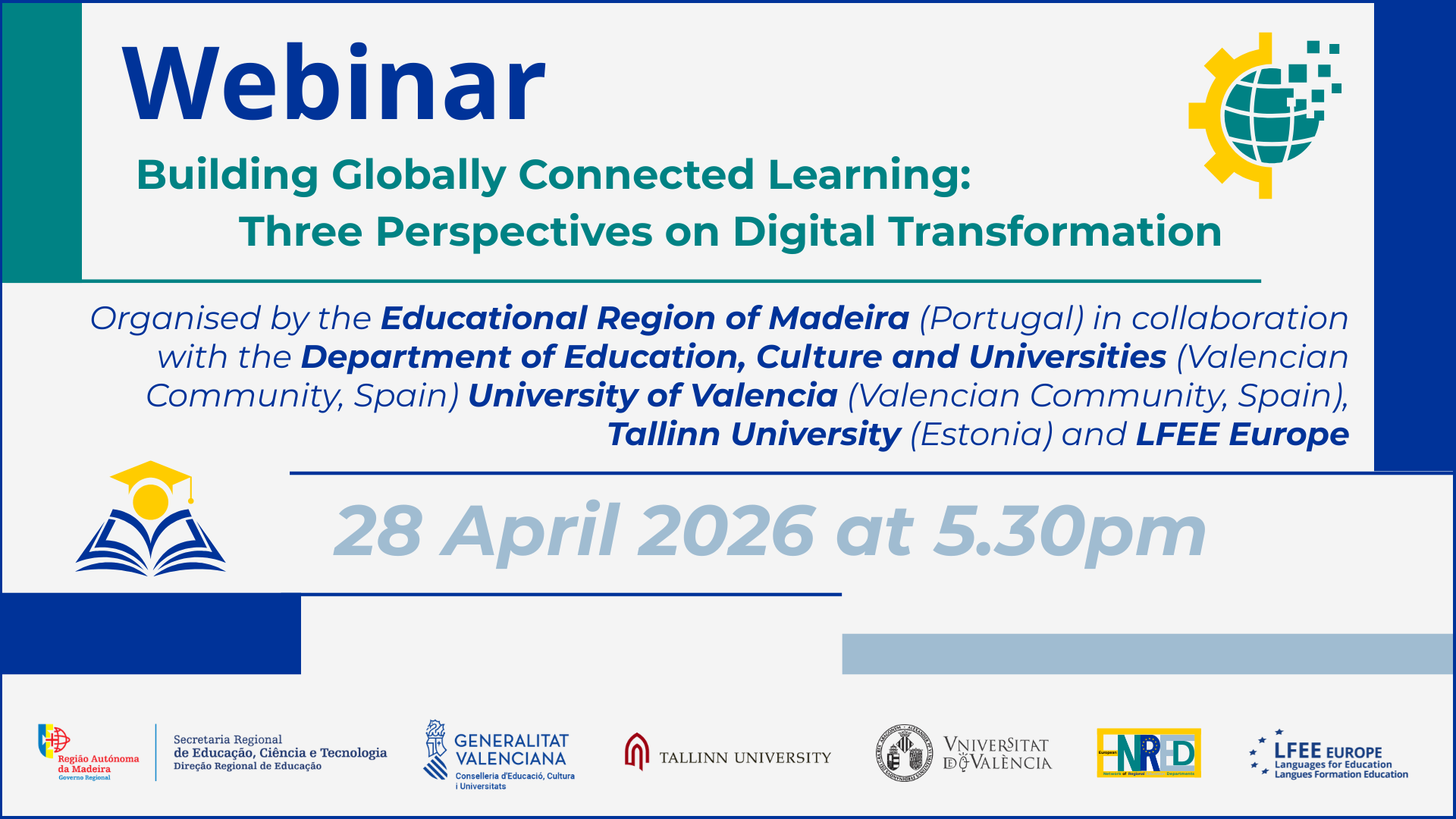 Con questa seconda sessione, continuiamo a portare avanti gli obiettivi che sono alla base del network ENRED: questo webinar è stato organizzato dai nostri colleghi della Regione Educativa di Madeira (Portogallo) e vedrà la partecipazione di tre relatori con vasta esperienza nell’innovazione educativa e nella trasformazione digitale, che forniranno prospettive complementari sulla trasformazione digitale fondata sull’apprendimento connesso a livello globale.